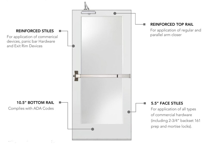 Neulite Doors are an ADA compliant door solution featuring standard reinforced stiles and top header for commercial hardware and closer applications.